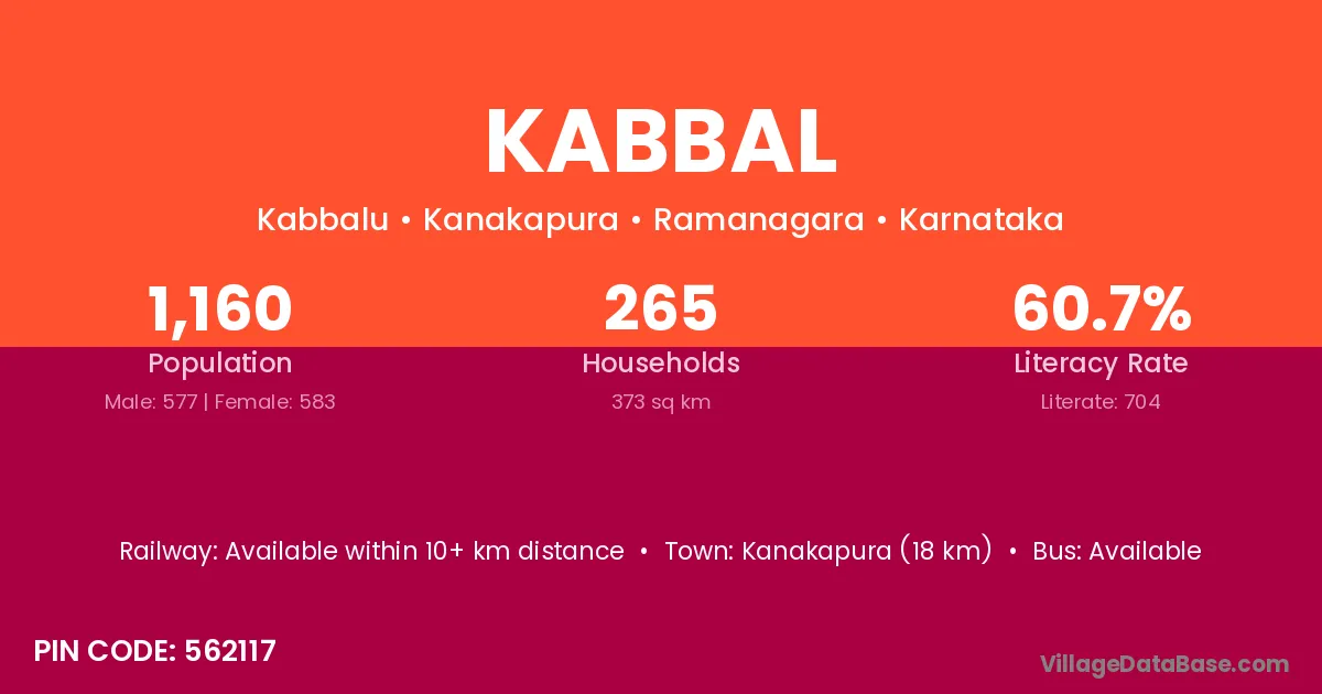 Kanakapura (18 km) is the nearest town to Kabbal village for major economic activities and is located approximately 18 km away.