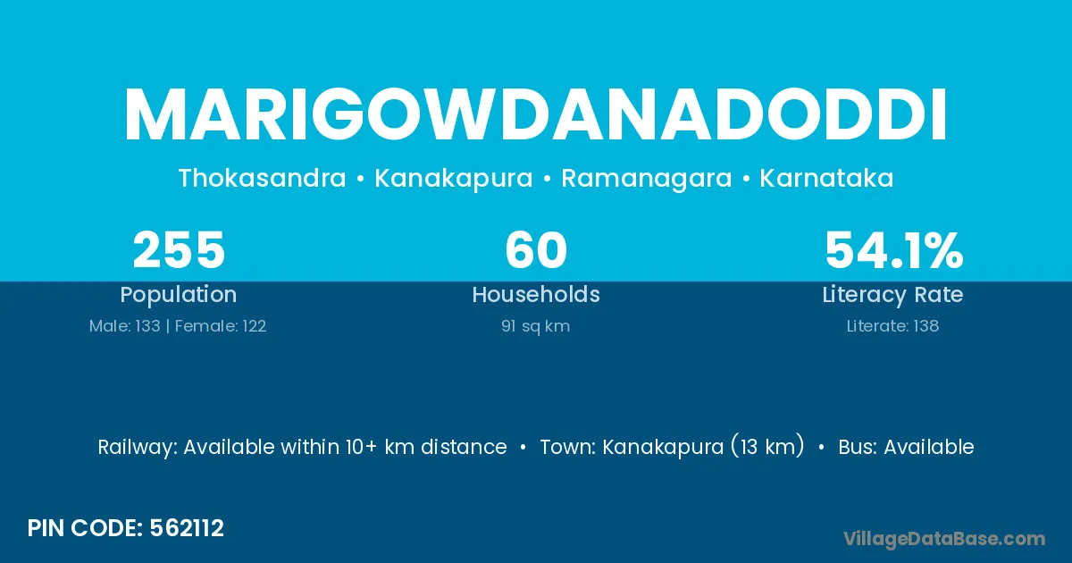 Kanakapura (13 km) is the nearest town to Marigowdanadoddi village for major economic activities and is located approximately 13 km away.