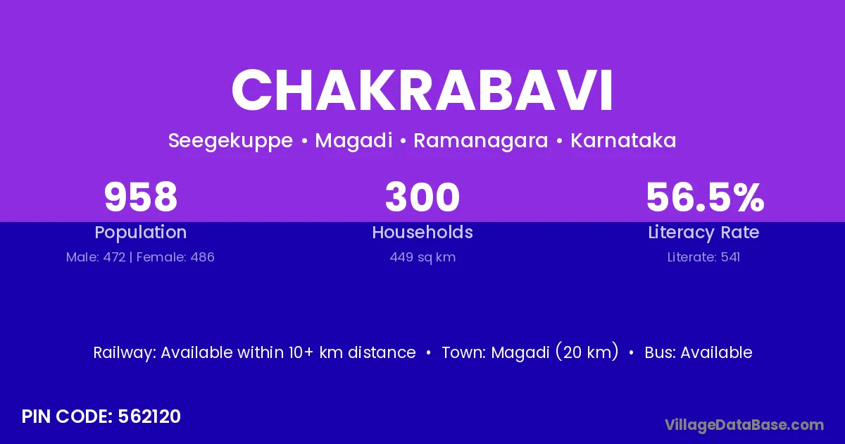Magadi (20 km) is the nearest town to Chakrabavi village for major economic activities and is located approximately 20 km away.