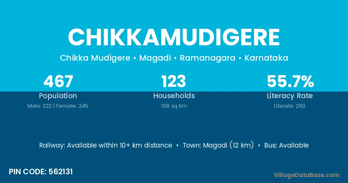Chikkamudigere village has a total population of 467 people, of which 222 are males and 245 are females.