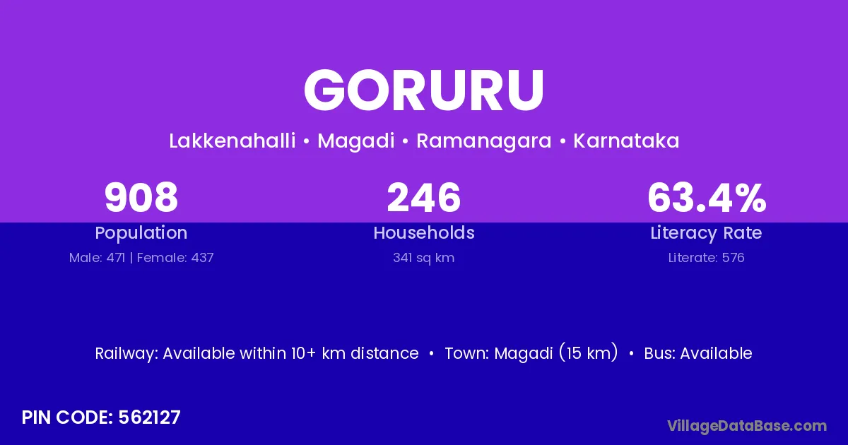 Magadi (15 km) is the nearest town to Goruru village for major economic activities and is located approximately 15 km away.