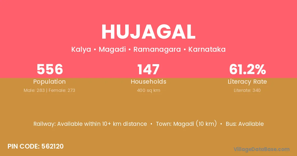 Magadi (10 km) is the nearest town to Hujagal village for major economic activities and is located approximately 10 km away.