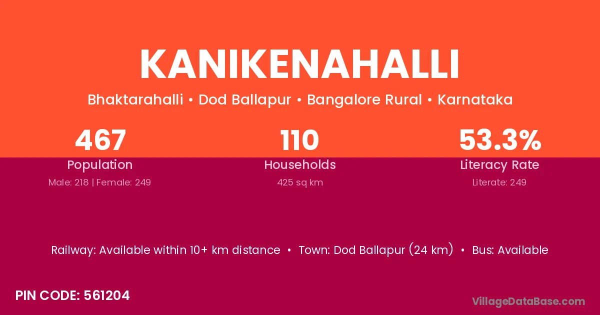 Magadi (24 km) is the nearest town to Kanikenahalli village for major economic activities and is located approximately 24 km away.
