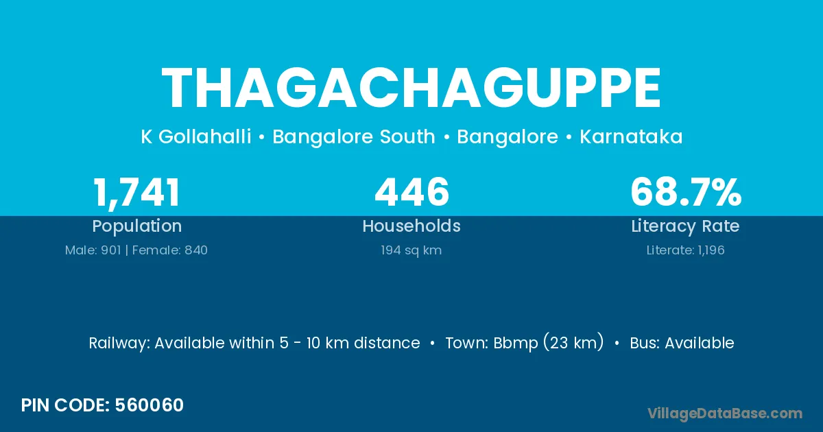 Magadi (8 km) is the nearest town to Thagachaguppe village for major economic activities and is located approximately 8 km away.