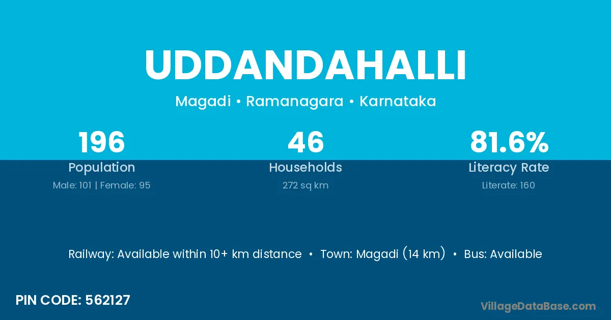 Magadi (14 km) is the nearest town to Uddandahalli village for major economic activities and is located approximately 14 km away.