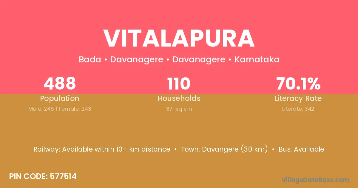 The literacy rate of Vitalapura village is 68.93%. Male literacy stands at 81.73% and female literacy at 55.88%.