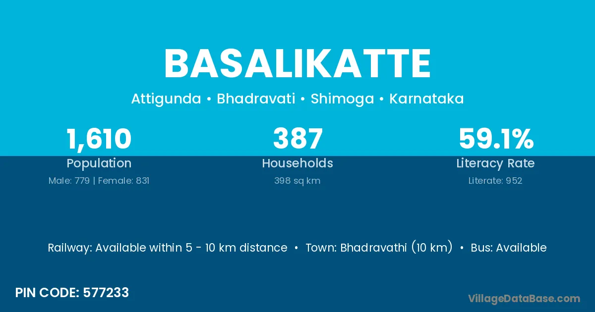 Bhadravathi (10 km) is the nearest town to Basalikatte village for major economic activities and is located approximately 10 km away.