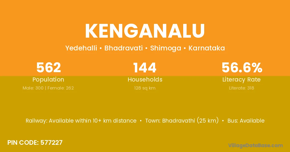 Bhadravathi (25 km) is the nearest town to Kenganalu village for major economic activities and is located approximately 25 km away.