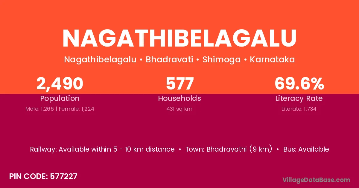 Bhadravathi (9 km) is the nearest town to Nagathibelagalu village for major economic activities and is located approximately 9 km away.