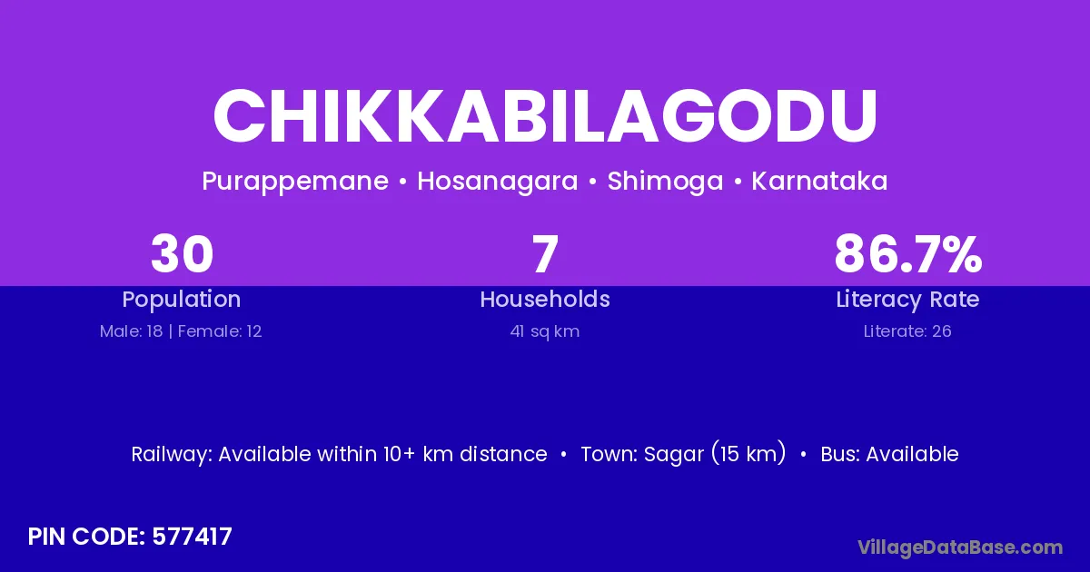 Sagar (15 km) is the nearest town to Chikkabilagodu village for major economic activities and is located approximately 15 km away.