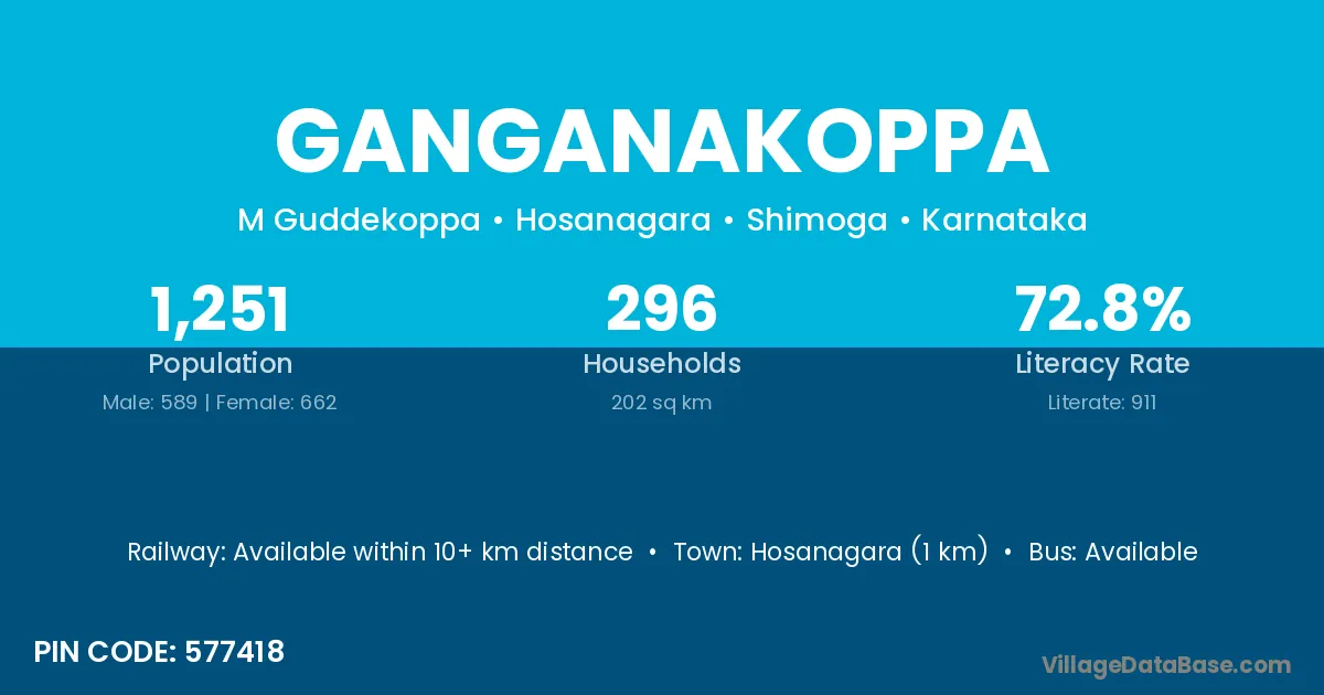 According to Census 2011 information, the village code of Ganganakoppa village is 577418.