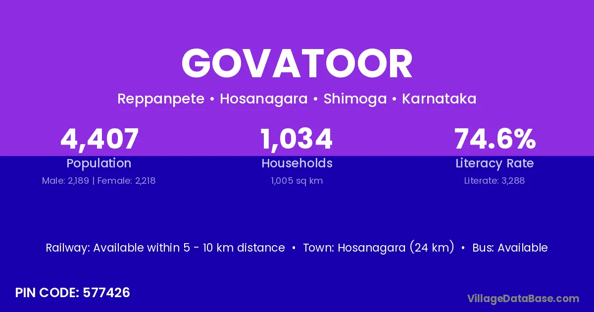 According to Census 2011 information, the village code of Govatoor village is 577426.