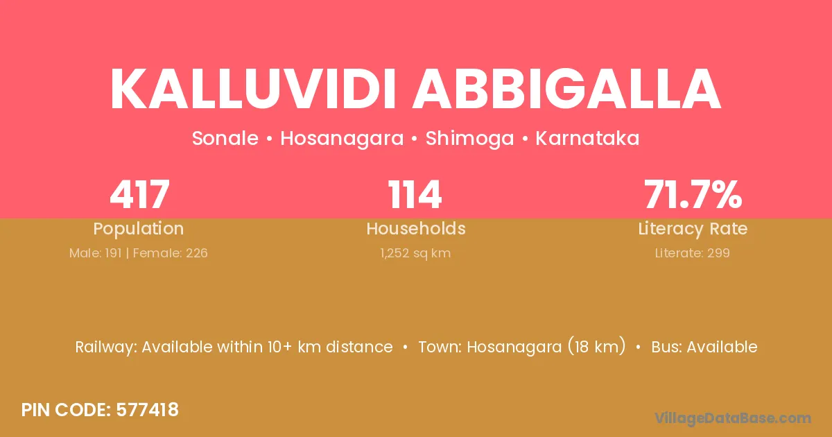 Hosanagara (18 km) is the nearest town to Kalluvidi Abbigalla village for major economic activities and is located approximately 18 km away.