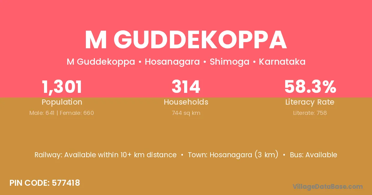 M Guddekoppa village has a total population of 1,301 people, of which 641 are males and 660 are females.