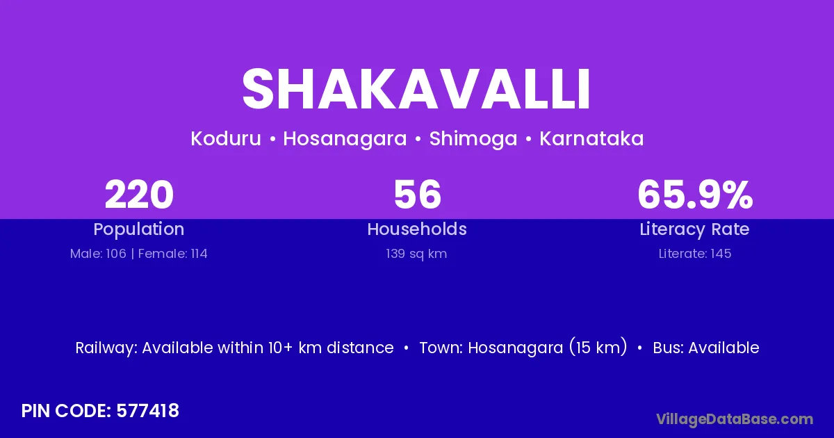 According to Census 2011 information, the village code of Shakavalli village is 577418.