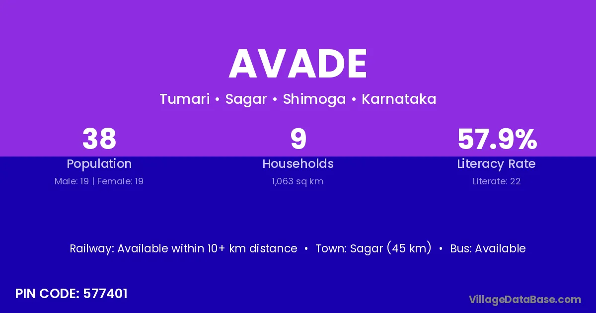 Sagar (45 km) is the nearest town to Avade village for major economic activities and is located approximately 45 km away.
