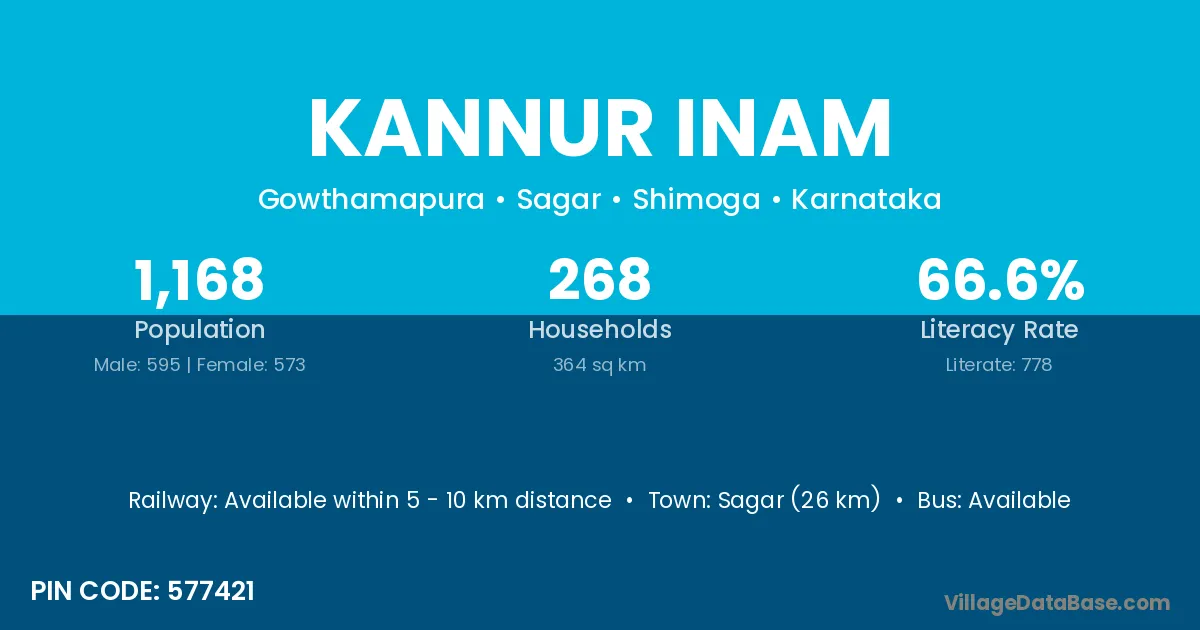 Sagar (26 km) is the nearest town to Kannur Inam village for major economic activities and is located approximately 26 km away.