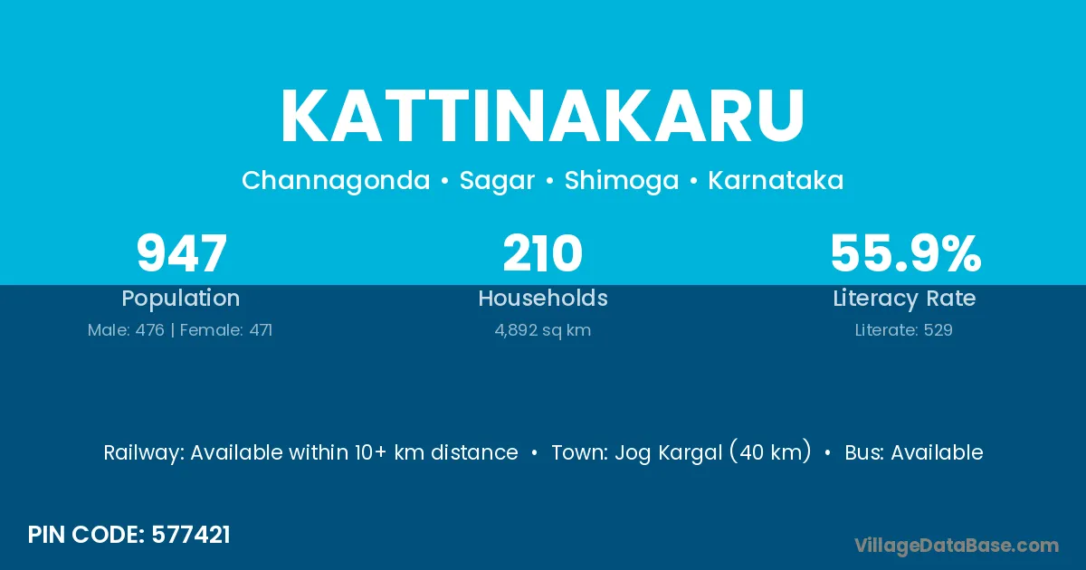 Jog Kargal (40 km) is the nearest town to Kattinakaru village for major economic activities and is located approximately 40 km away.