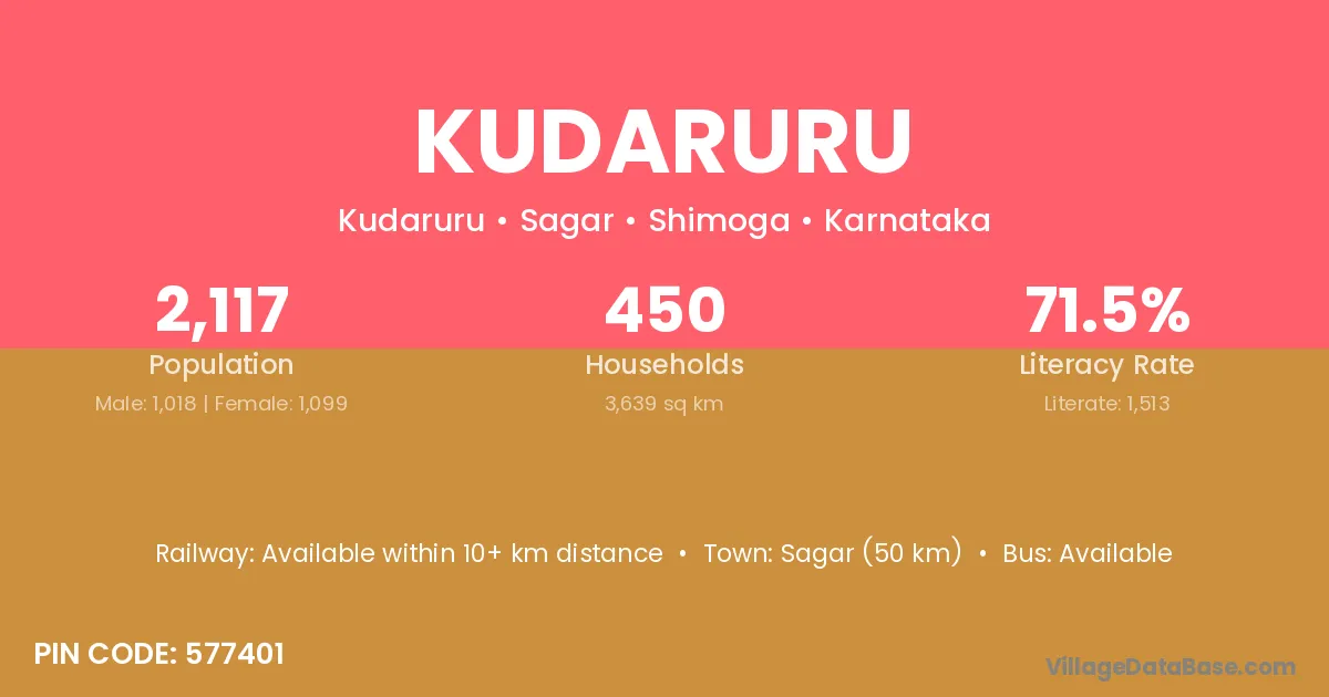 Sagar (50 km) is the nearest town to Kudaruru village for major economic activities and is located approximately 50 km away.
