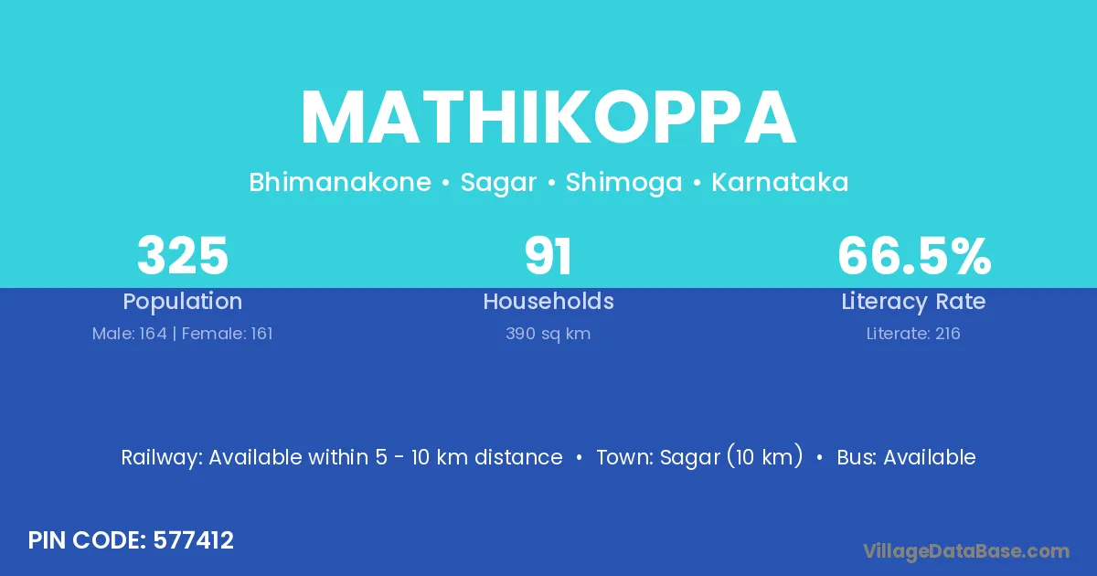 Sagar (10 km) is the nearest town to Mathikoppa village for major economic activities and is located approximately 10 km away.