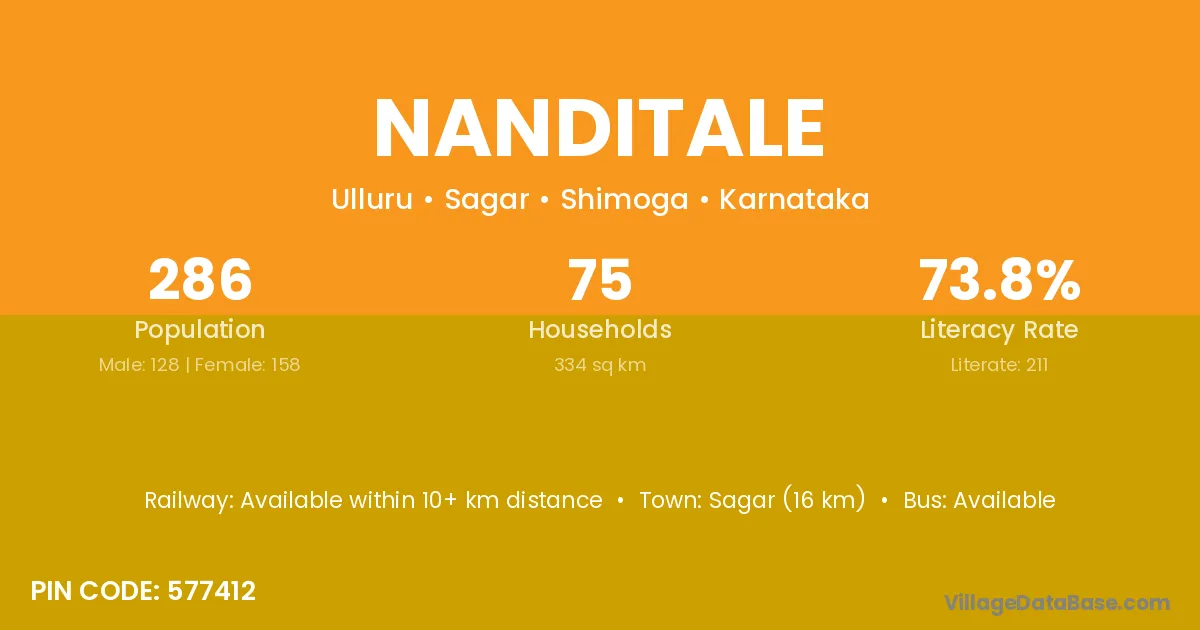 Sagar (16 km) is the nearest town to Nanditale village for major economic activities and is located approximately 16 km away.