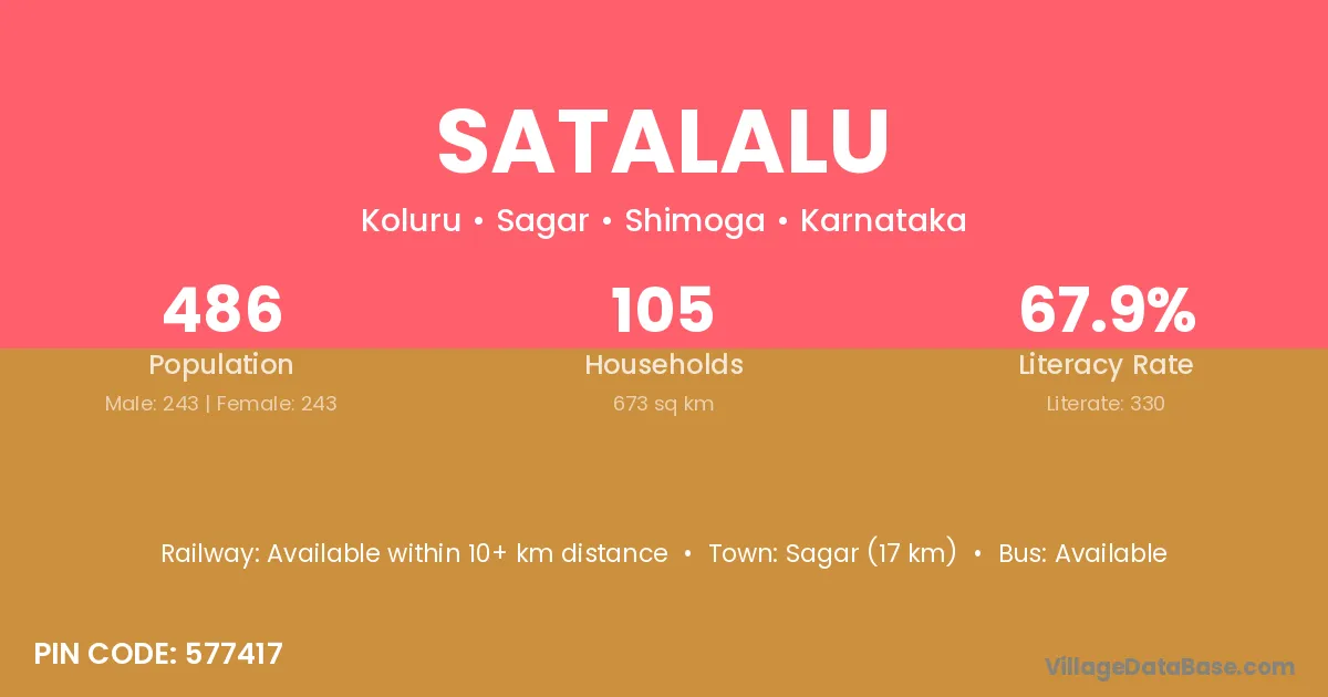 Sagar (17 km) is the nearest town to Satalalu village for major economic activities and is located approximately 17 km away.