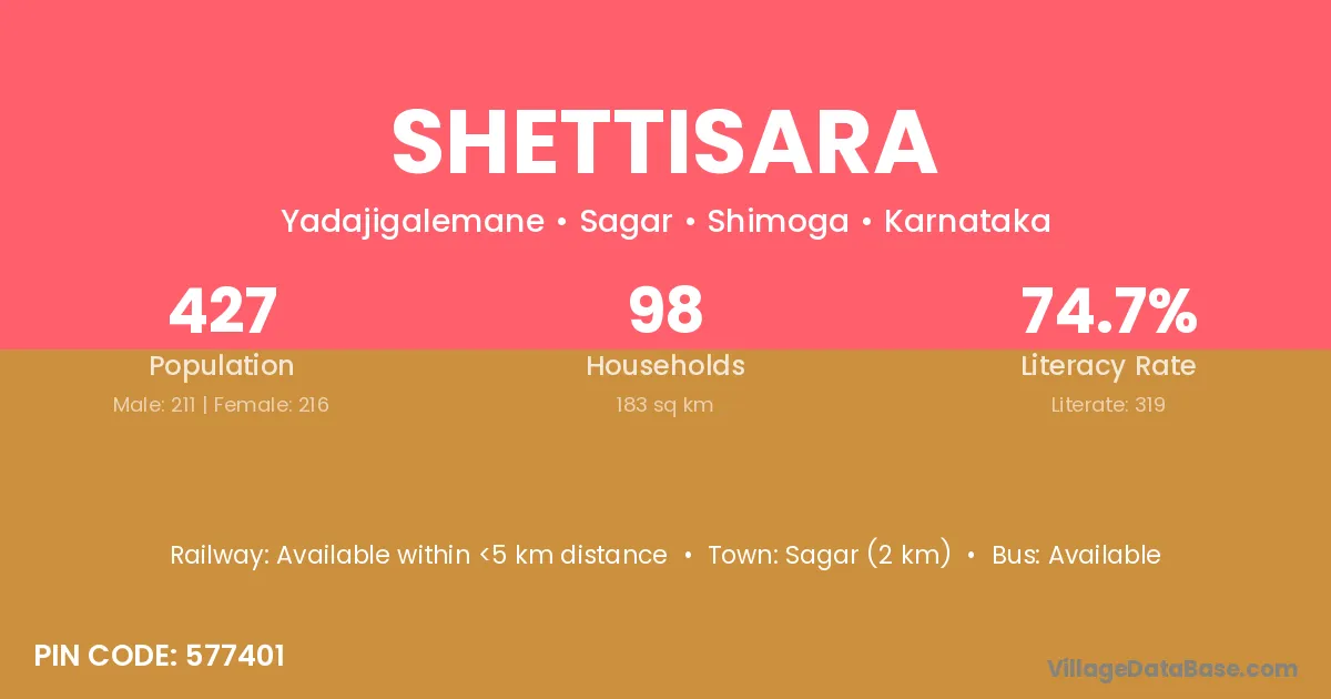Shettisara village has a total population of 427 people, of which 211 are males and 216 are females.