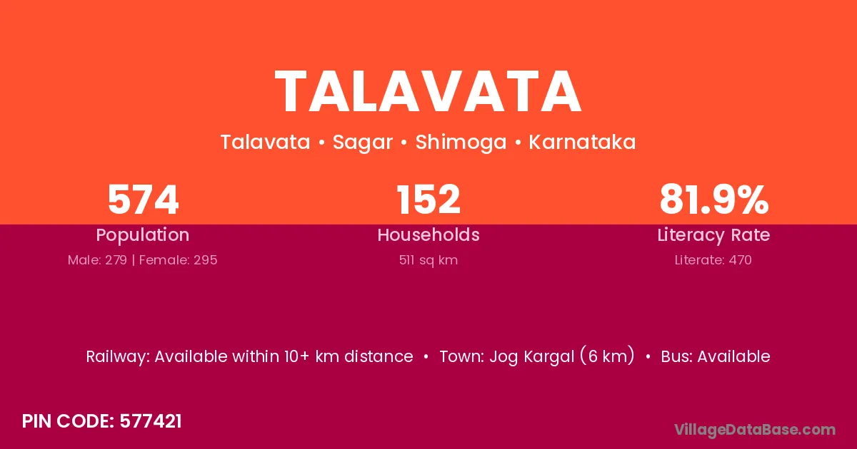 Jog Kargal (6 km) is the nearest town to Talavata village for major economic activities and is located approximately 6 km away.