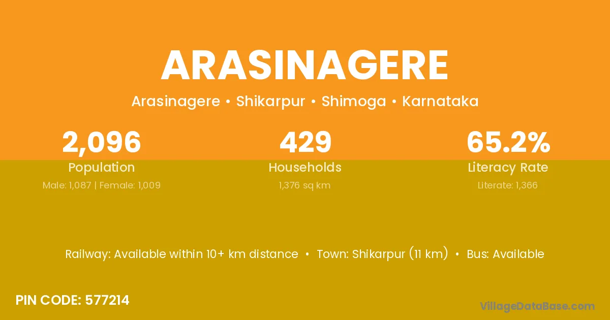 Shikarpur (11 km) is the nearest town to Arasinagere village for major economic activities and is located approximately 11 km away.
