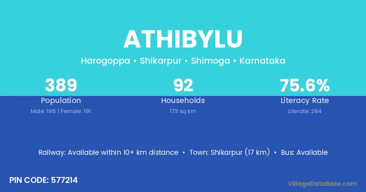 Shikarpur (17 km) is the nearest town to Athibylu village for major economic activities and is located approximately 17 km away.