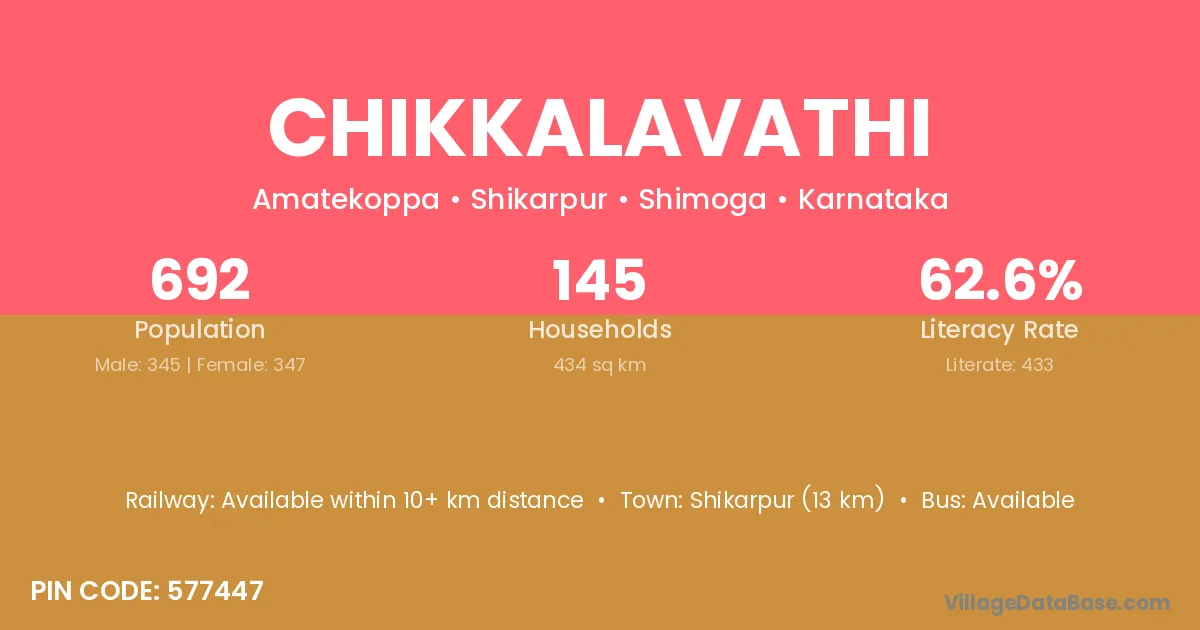 Shikarpur (13 km) is the nearest town to Chikkalavathi village for major economic activities and is located approximately 13 km away.