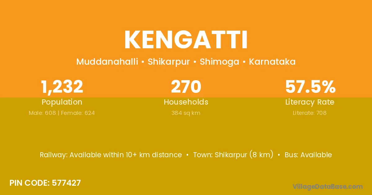 Shikarpur (8 km) is the nearest town to Kengatti village for major economic activities and is located approximately 8 km away.