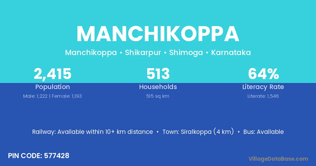 Siralkoppa (4 km) is the nearest town to Manchikoppa village for major economic activities and is located approximately 4 km away.