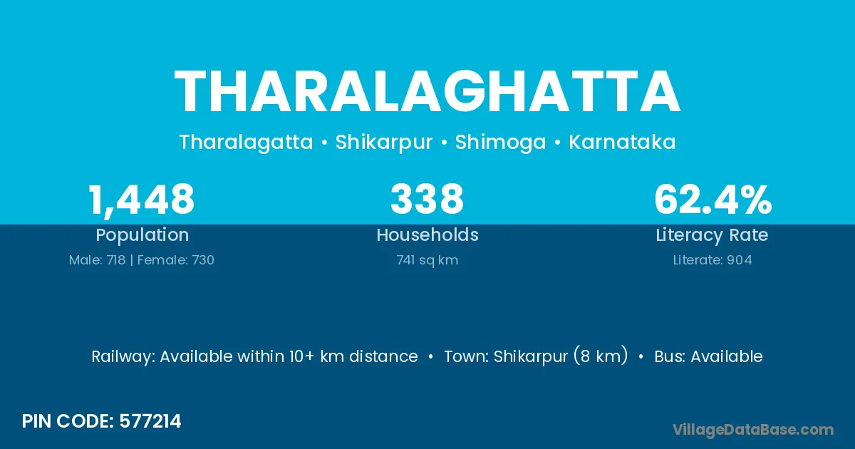 Shikarpur (8 km) is the nearest town to Tharalaghatta village for major economic activities and is located approximately 8 km away.