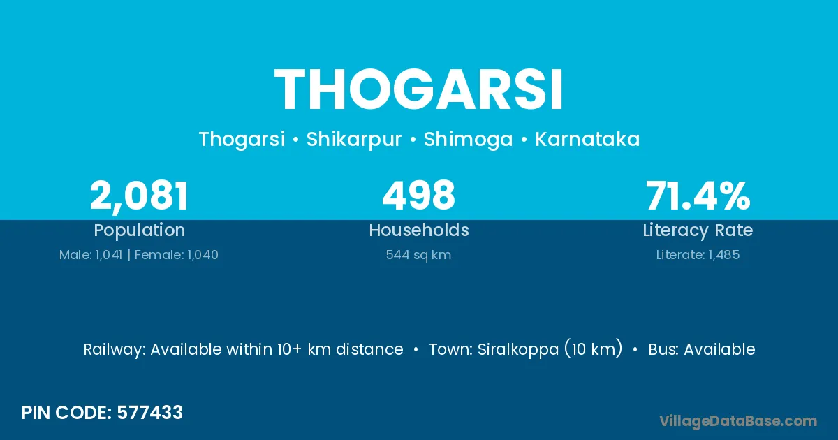According to Census 2011 information, the village code of Thogarsi village is 577433.