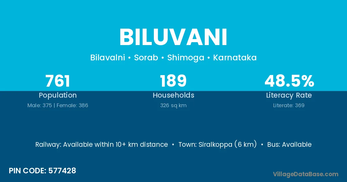 Siralkoppa (6 km) is the nearest town to Biluvani village for major economic activities and is located approximately 6 km away.