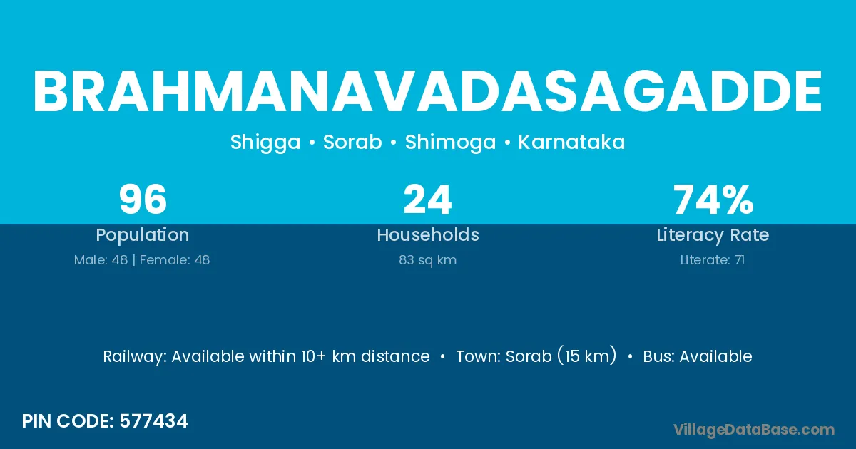 Brahmanavadasagadde village has a total population of 96 people, of which 48 are males and 48 are females.
