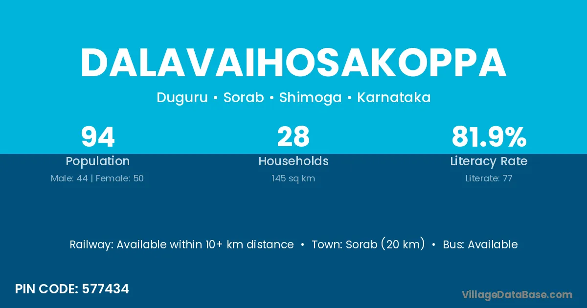 Dalavaihosakoppa village has a total population of 94 people, of which 44 are males and 50 are females.