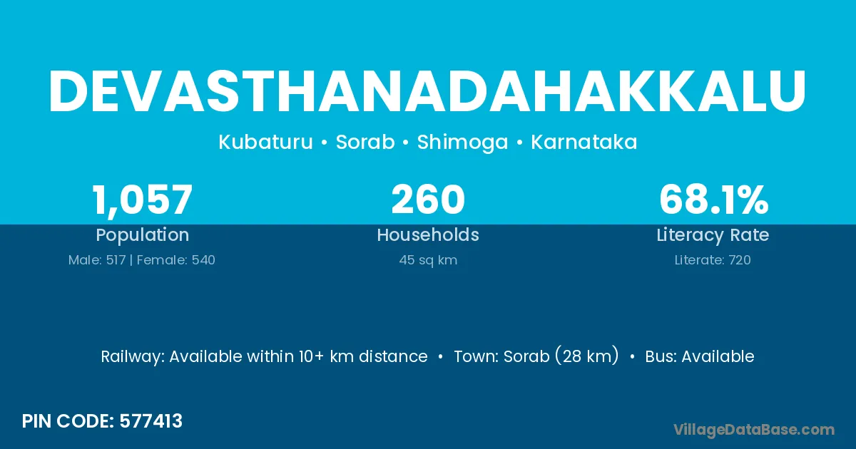 Devasthanadahakkalu village has a total population of 1,057 people, of which 517 are males and 540 are females.