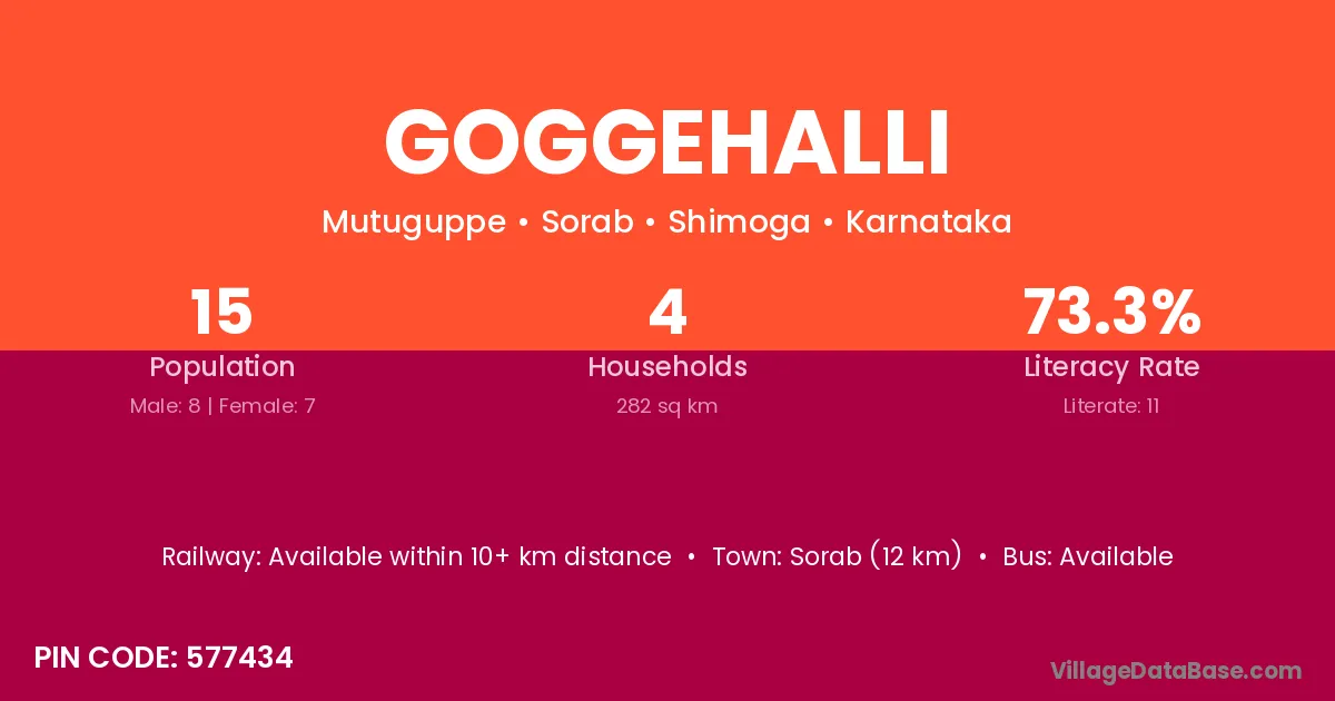 Sorab (12 km) is the nearest town to Goggehalli village for major economic activities and is located approximately 12 km away.