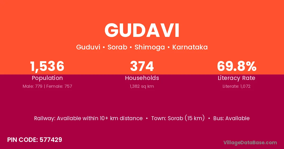Sorab (15 km) is the nearest town to Gudavi village for major economic activities and is located approximately 15 km away.