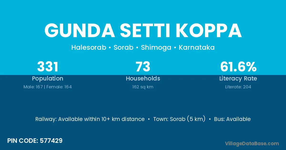 Gunda Setti Koppa village has a total population of 331 people, of which 167 are males and 164 are females.