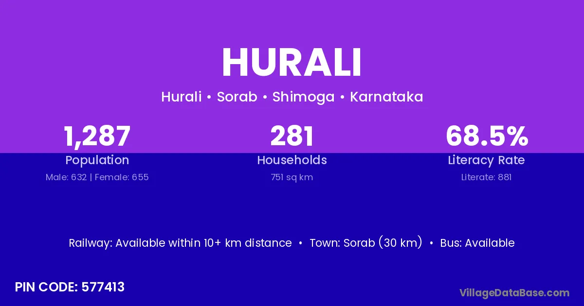 According to Census 2011 information, the village code of Hurali village is 577413.