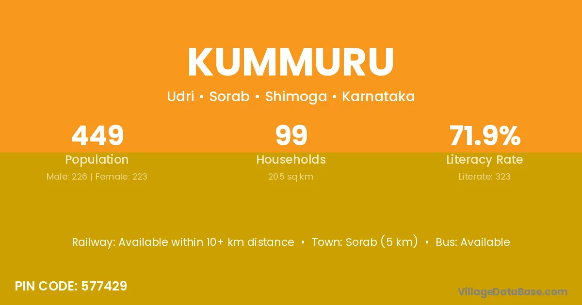 Sorab (5 km) is the nearest town to Kummuru village for major economic activities and is located approximately 5 km away.