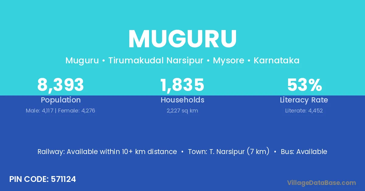 Muguru village has a total population of 1,210 people, of which 611 are males and 599 are females.