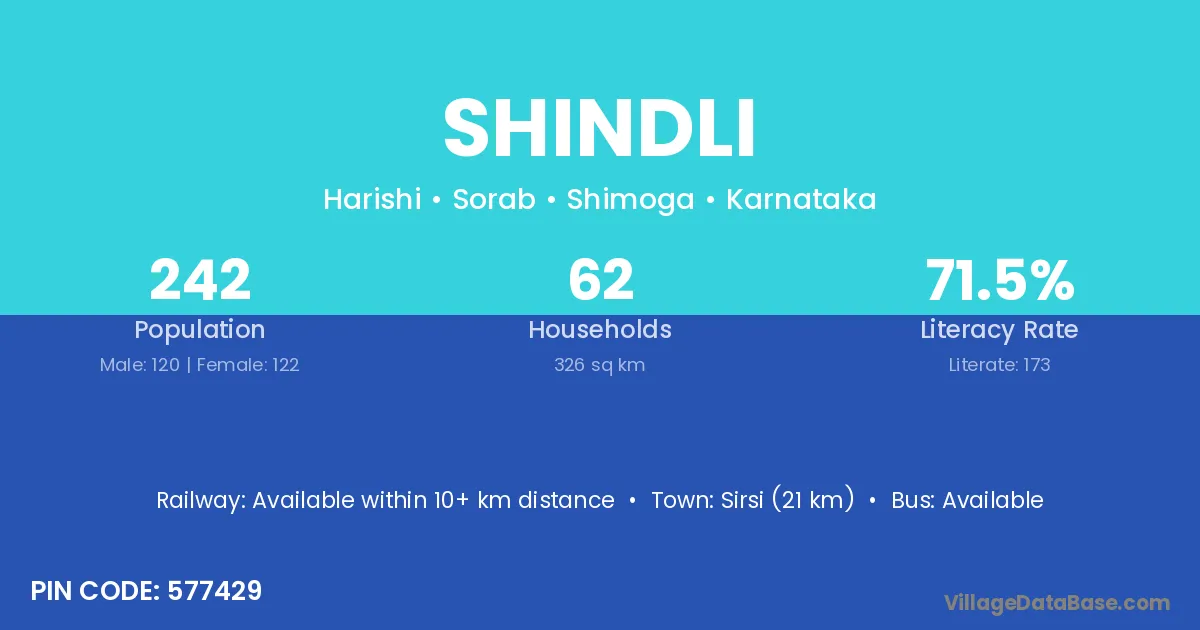Sirsi (21 km) is the nearest town to Shindli village for major economic activities and is located approximately 21 km away.