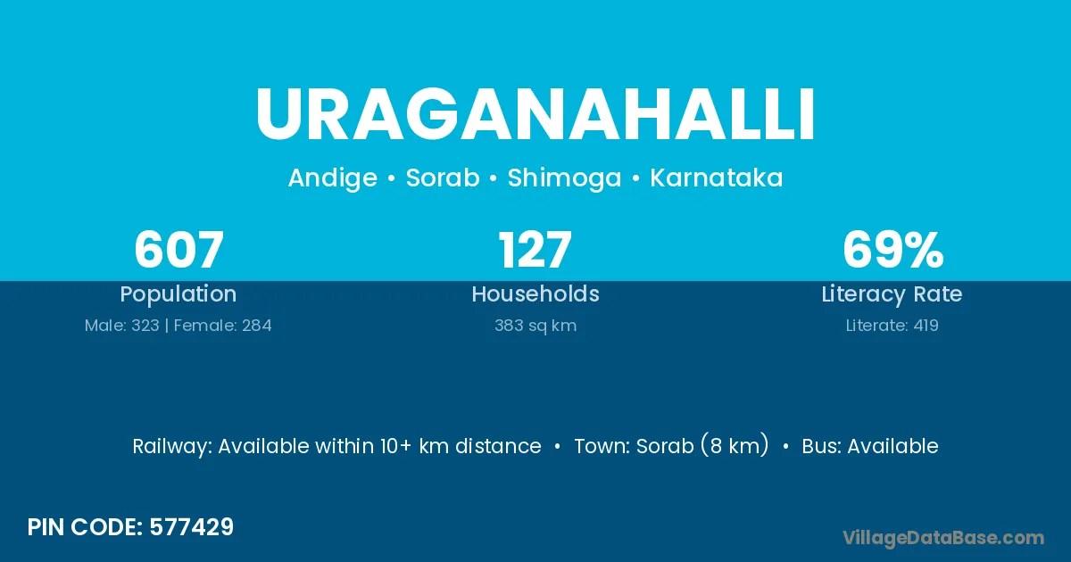Uraganahalli village has a total population of 607 people, of which 323 are males and 284 are females.