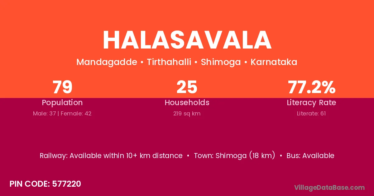 Shimoga (18 km) is the nearest town to Halasavala village for major economic activities and is located approximately 18 km away.