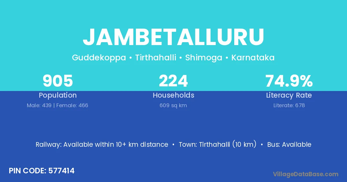 Tirthahalli (10 km) is the nearest town to Jambetalluru village for major economic activities and is located approximately 10 km away.