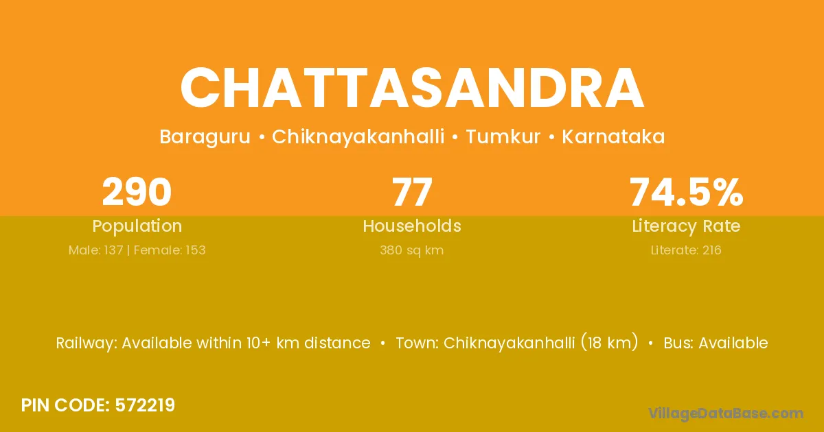 Chattasandra village has a total population of 290 people, of which 137 are males and 153 are females.